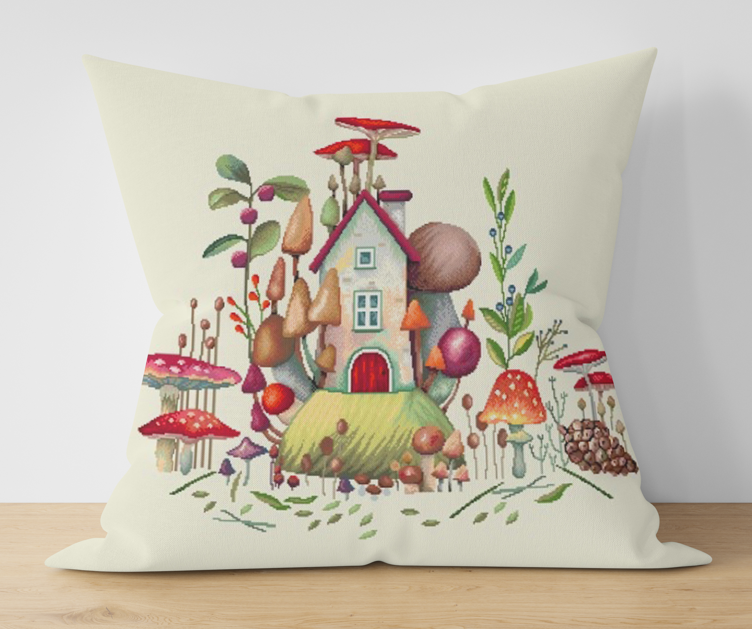 Жакардова декоративна калъфка Гъбена къща 45х45 см.