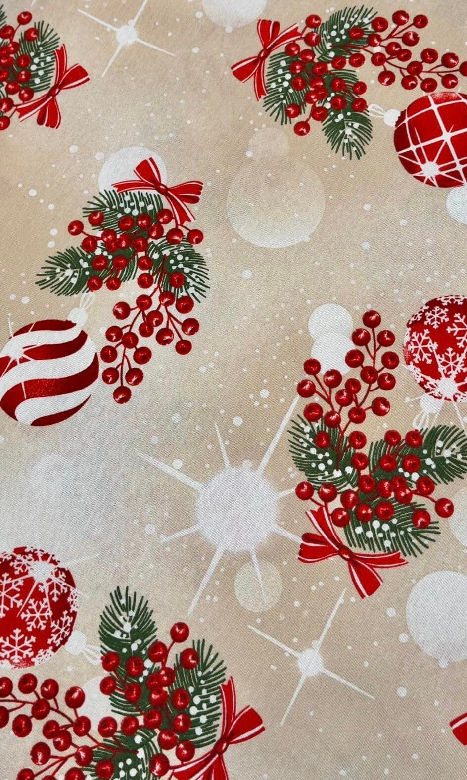 Създайте вълшебна атмосфера за вашите празнични вечери с елегантната ни коледна покривка, която съчетава стил и качество. Изработена от висококачествена материя с изящни коледни мотиви – снежинки, елхички и класически червени и зелени цветове, тази покривка ще придаде на вашата маса топлина и уют по време на празниците.