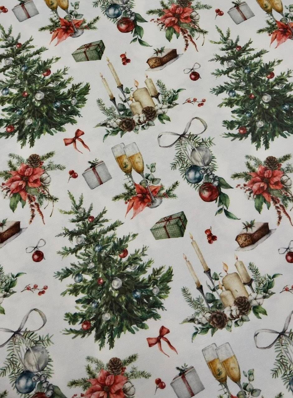 Внесете празнично настроение у дома с нашата коледна хидрофобирана покривка, която съчетава елегантен дизайн и практичност. Изработена от висококачествен, водоотблъскващ материал, тя е идеалното решение за вашата трапезна маса по време на празниците.