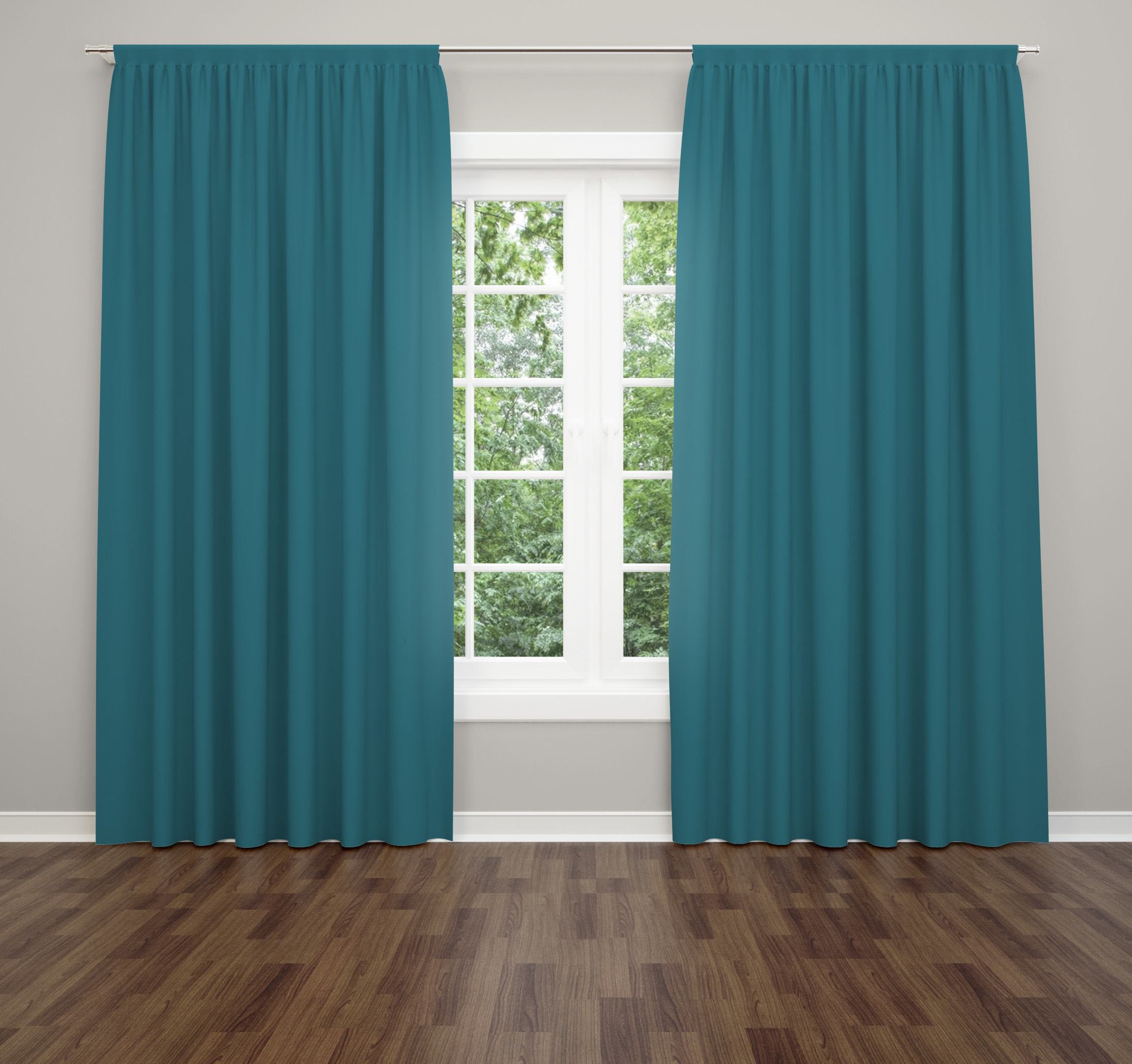 Мек плат като кадифе в тъмно синьо, плътен с функция да затъмнява, но не напълно в стаята.
